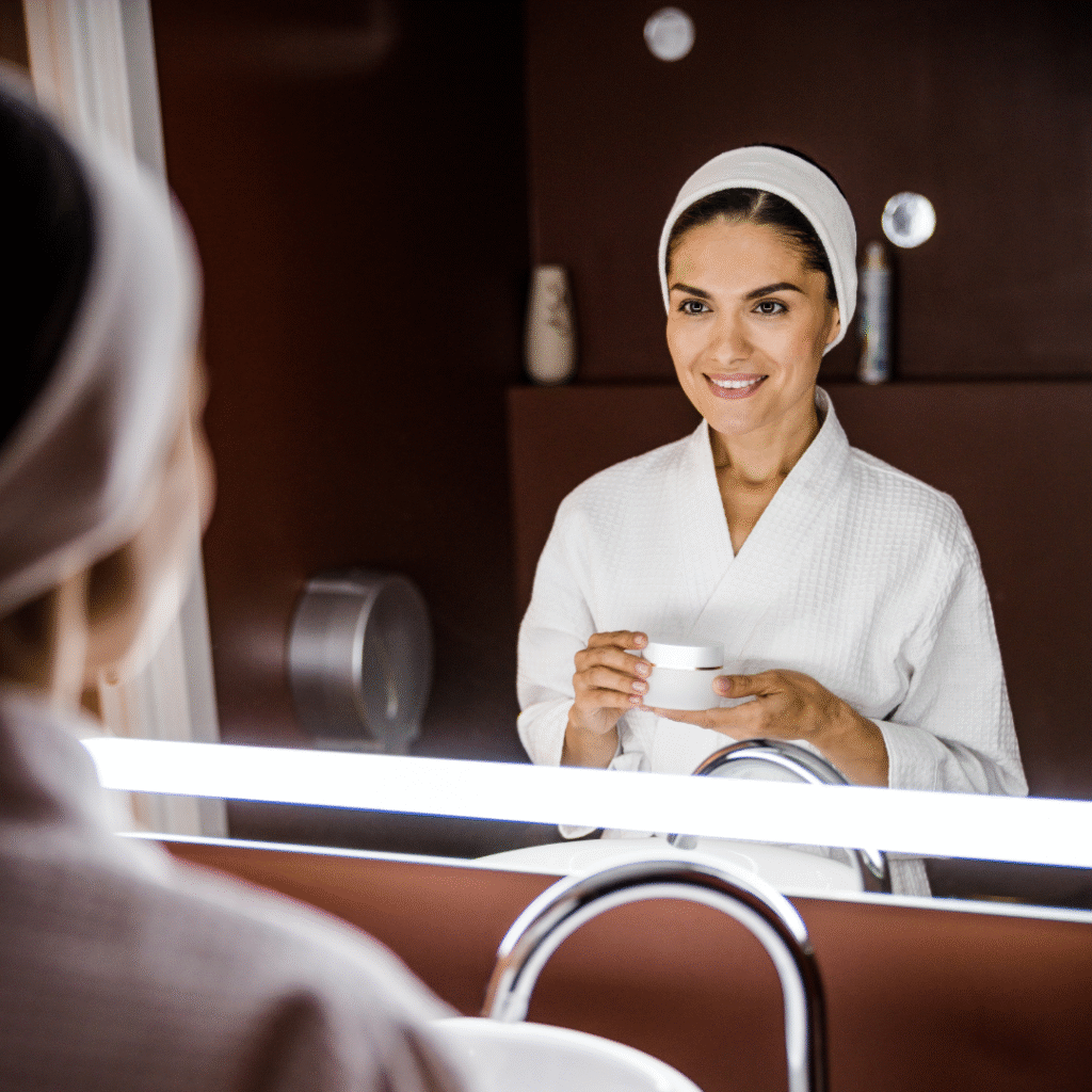 Wash your face in the morning and use sunscreen.